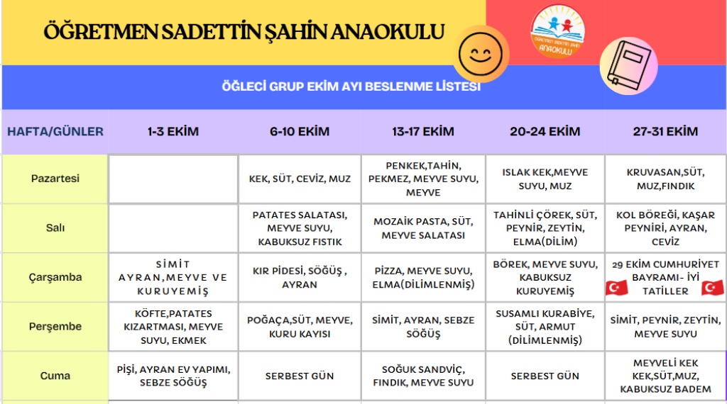 EKİM AYI ÖĞLE GRUBU BESLENME LİSTESİ