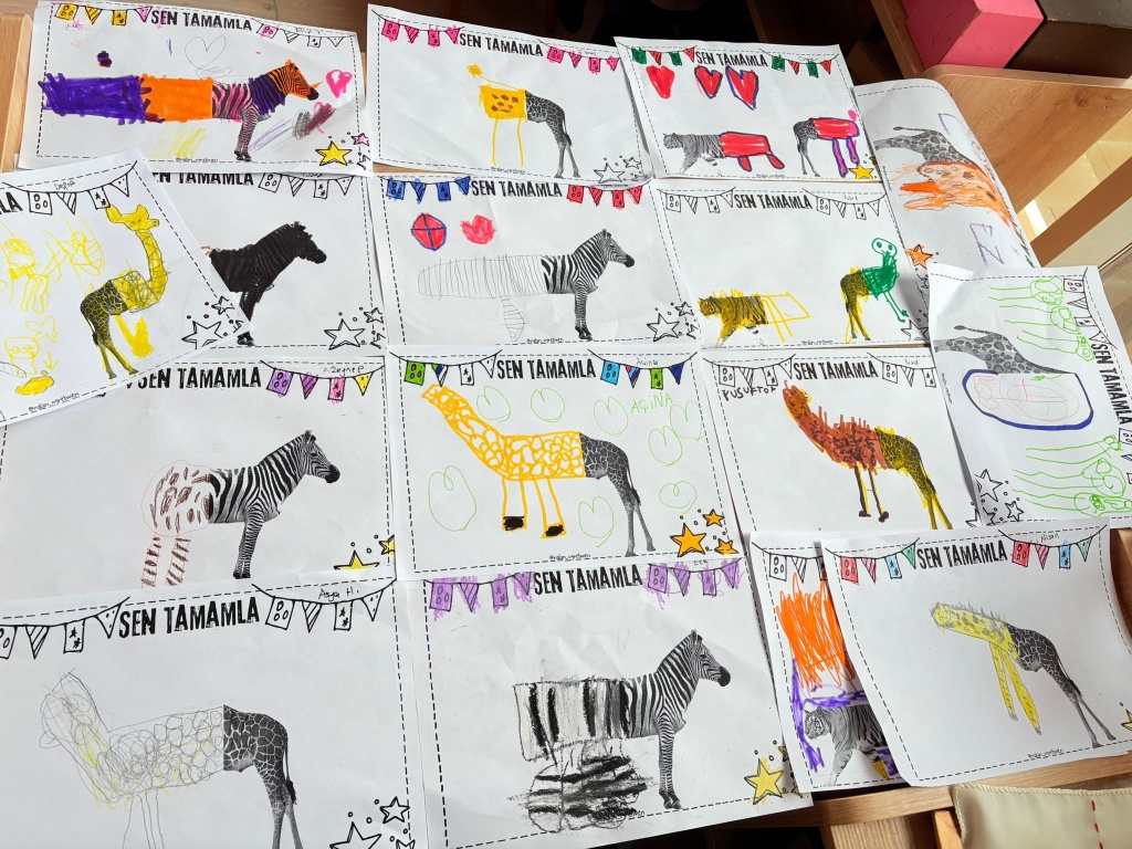 - Bir rakamından zürafalar yaparak '1' rakamını pekiştirdiler,