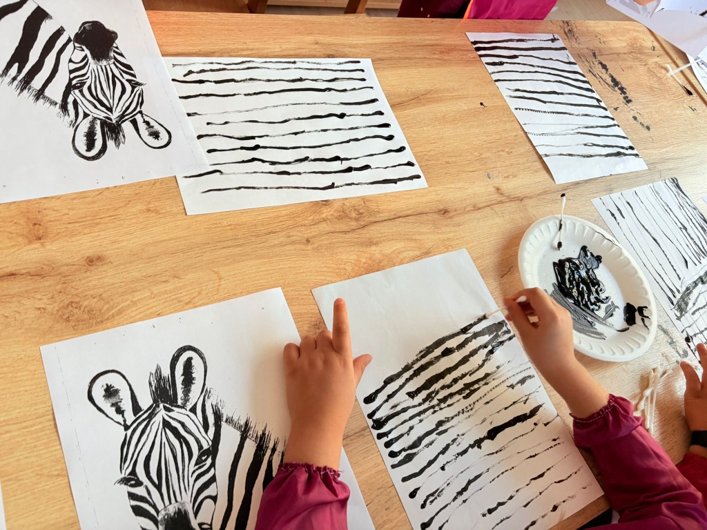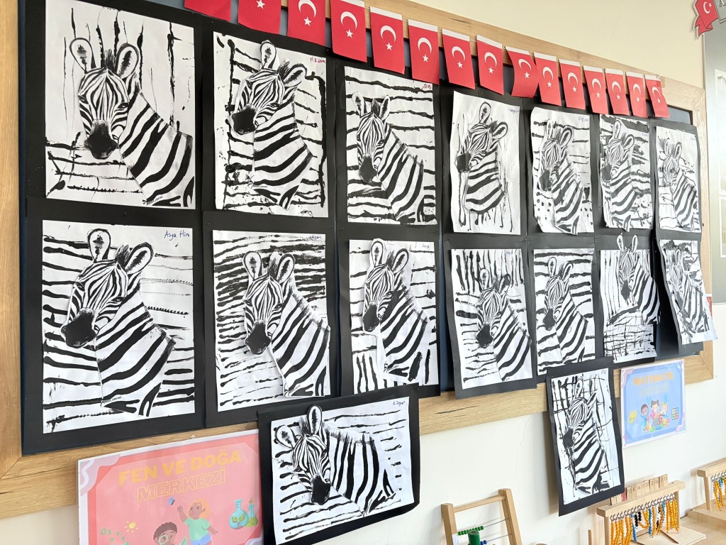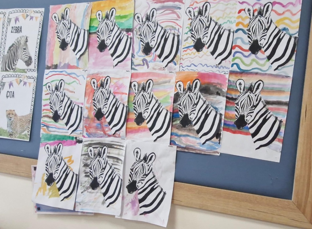 - Çizgi ve kolaj çalışmalarıyla zebralar tasarladılar,