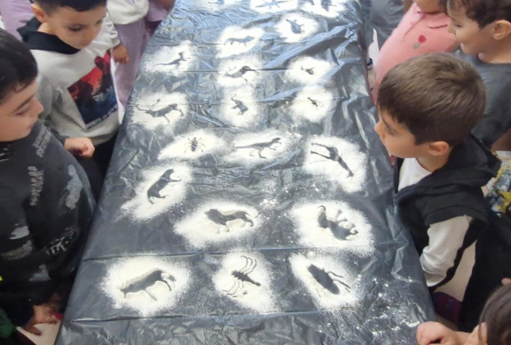 - Hayvanları ayak izleri ile eşleştirdiler,