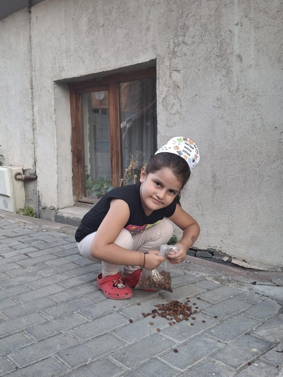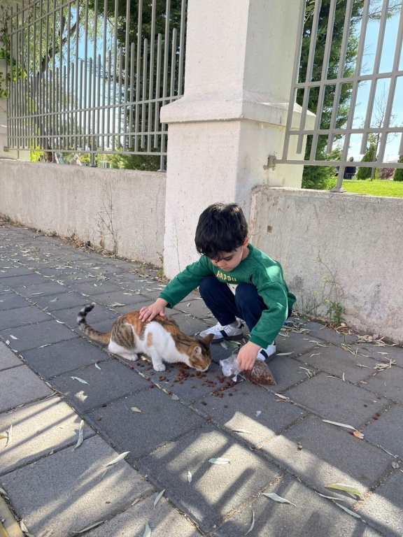 Çocukların yaratıcılığını, dikkatini ve el becerlerini destekleyen bu etkinliklerin yanı sıra öğrencilerimiz sevimli hayvan dostları için kedi mamaları paketleyerek onları kediciklerle buluşturdular.